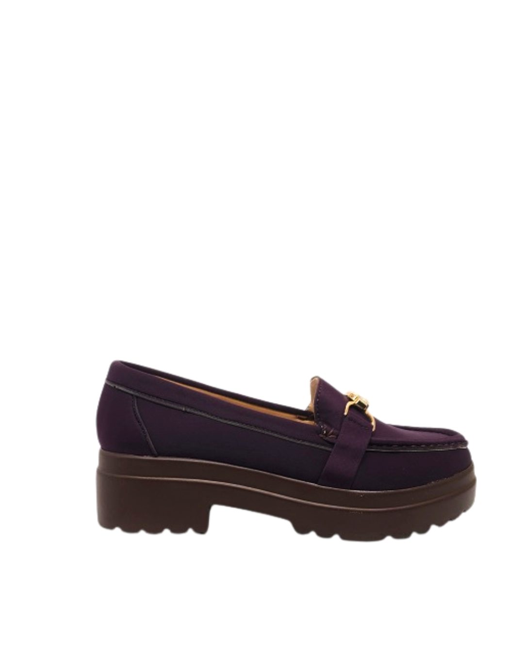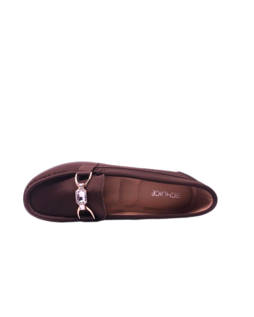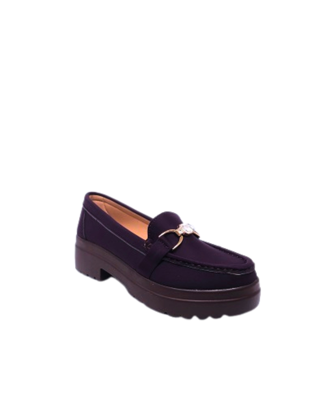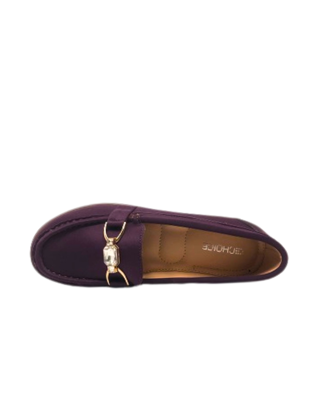 Elegant Brown & Purple chunky loafers for women featuring a gold buckle, soft cushioning, and durable anti-slip sole. Perfect for office, casual, and everyday wear. Shop stylish & comfortable ladies loafers at Choices Shoes.