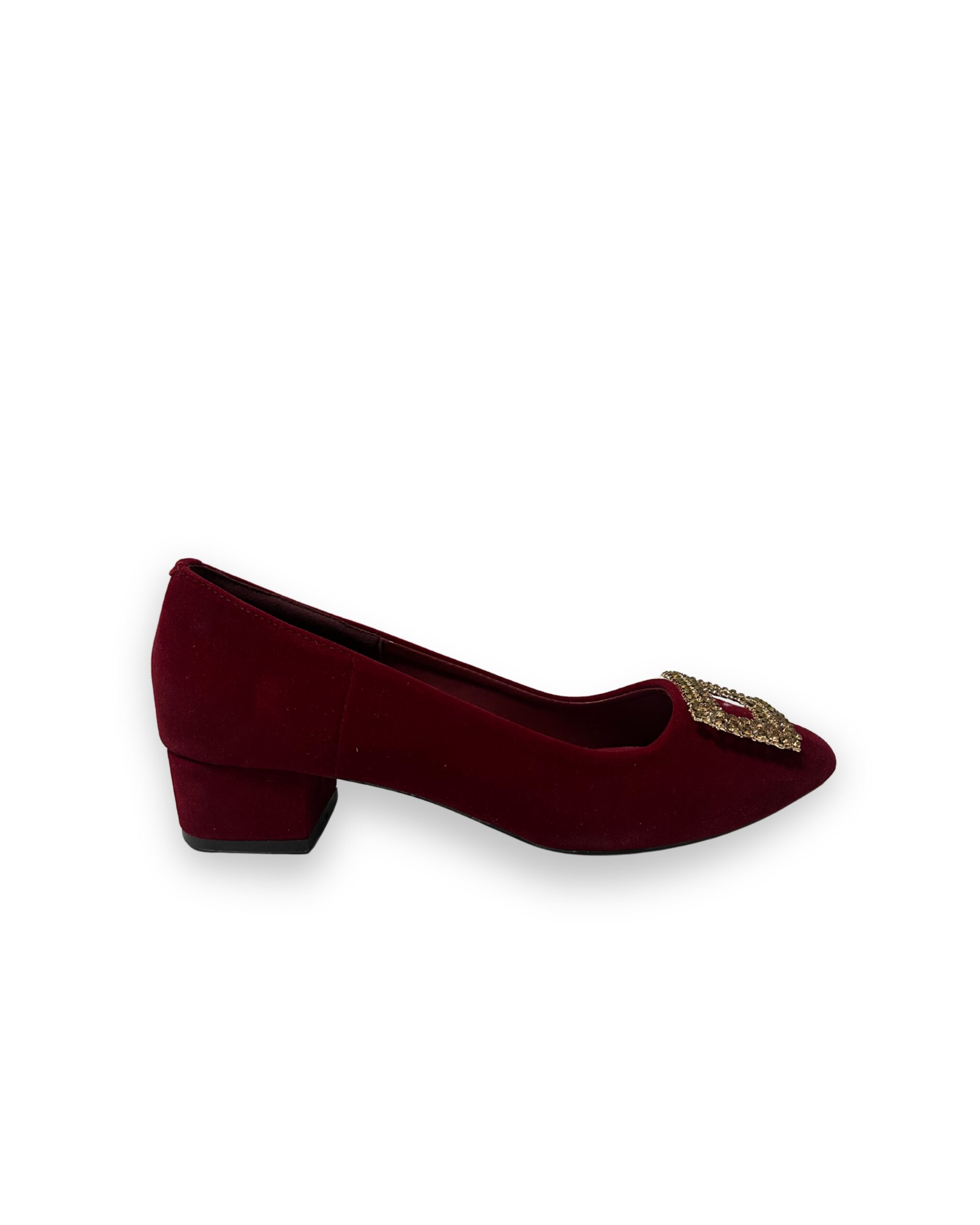 Step into timeless elegance with our Red &  Black Fancy Court Shoes, adorned with a sparkling golden buckle detail that adds a touch of luxury to every step. Designed with a comfortable low block heel, these shoes offer both style and ease—perfect for long wear without compromising on glamour.