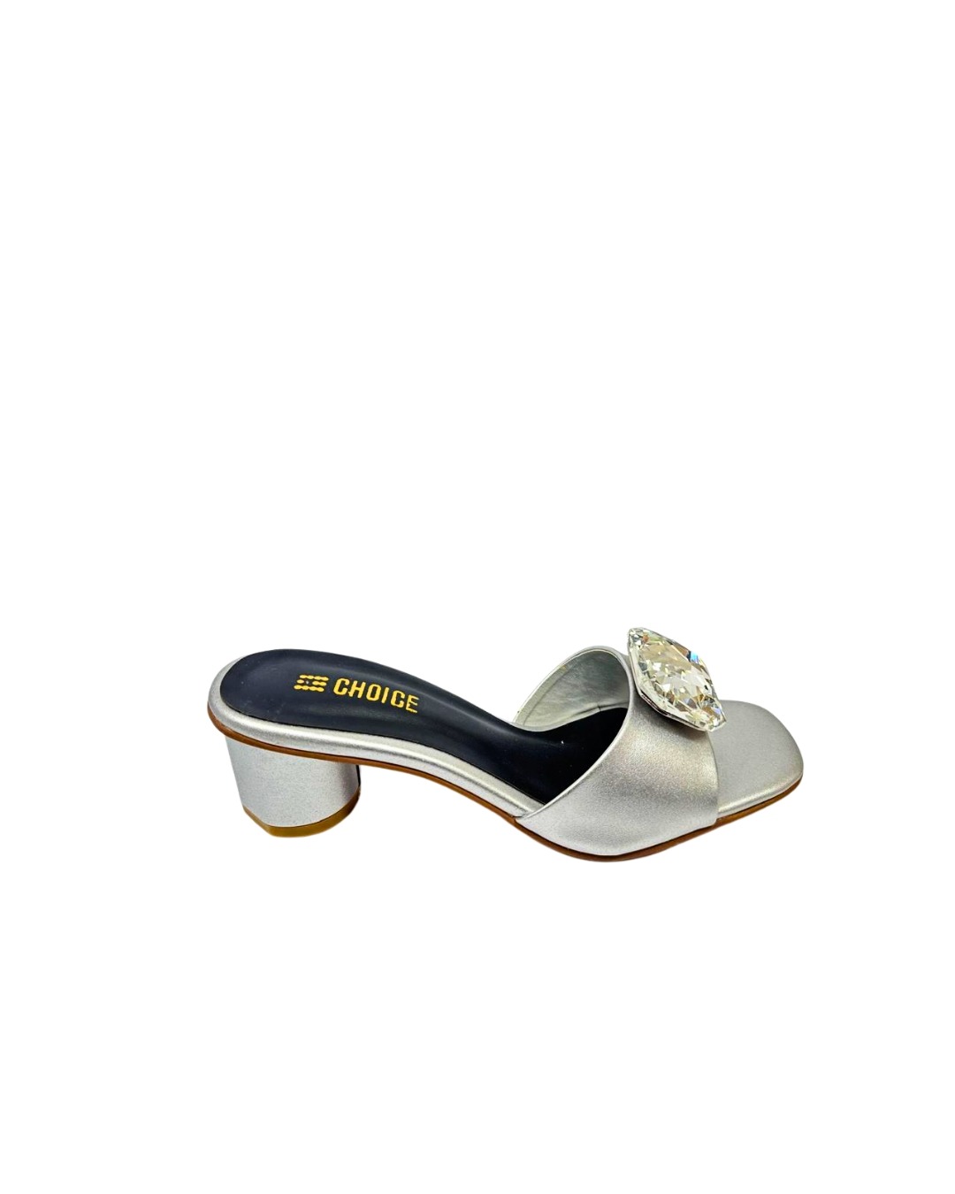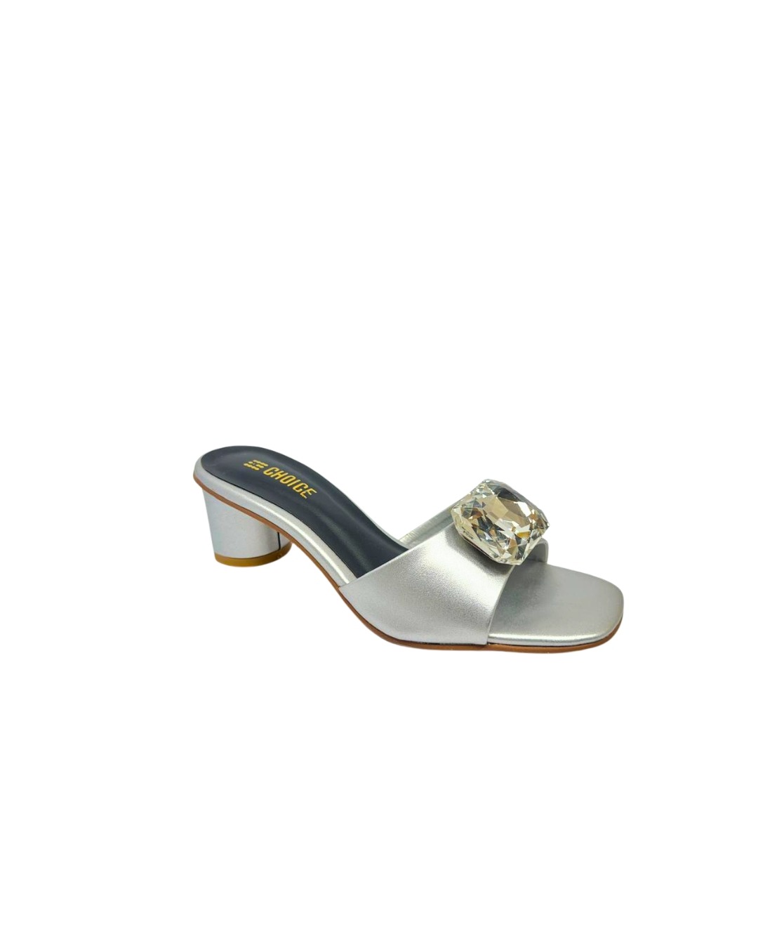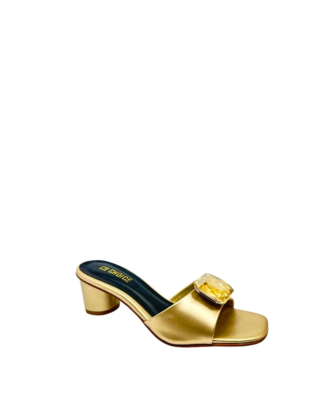 Step into luxury with these stunning Golden & Silver Fancy Block Heel Slippers from Choices Shoes. Designed for modern elegance, these heels feature a smooth finish with a sparkling oversized gemstone accent that adds a touch of glamour to any outfit. The mid-height block heel offers both style and comfort, making them perfect for festive occasions, parties, or evening gatherings. Pair them with traditional wear or western ensembles to elevate your look effortlessly
