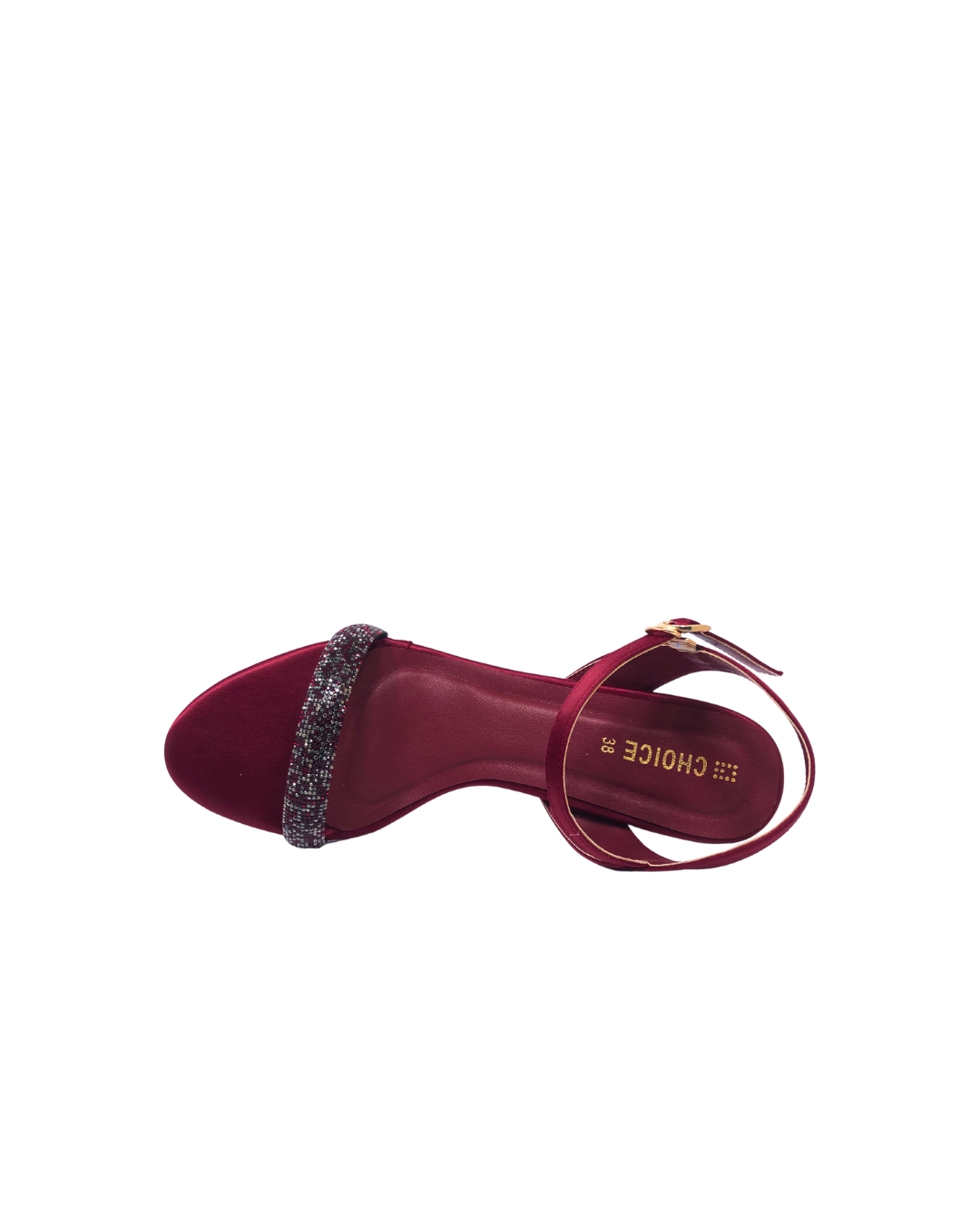 Shop elegant maroon embellished heels for women. Sparkling rhinestone strap, comfortable pencil heel, and perfect for weddings, parties, and festive events. Buy now from Choices Shoes!