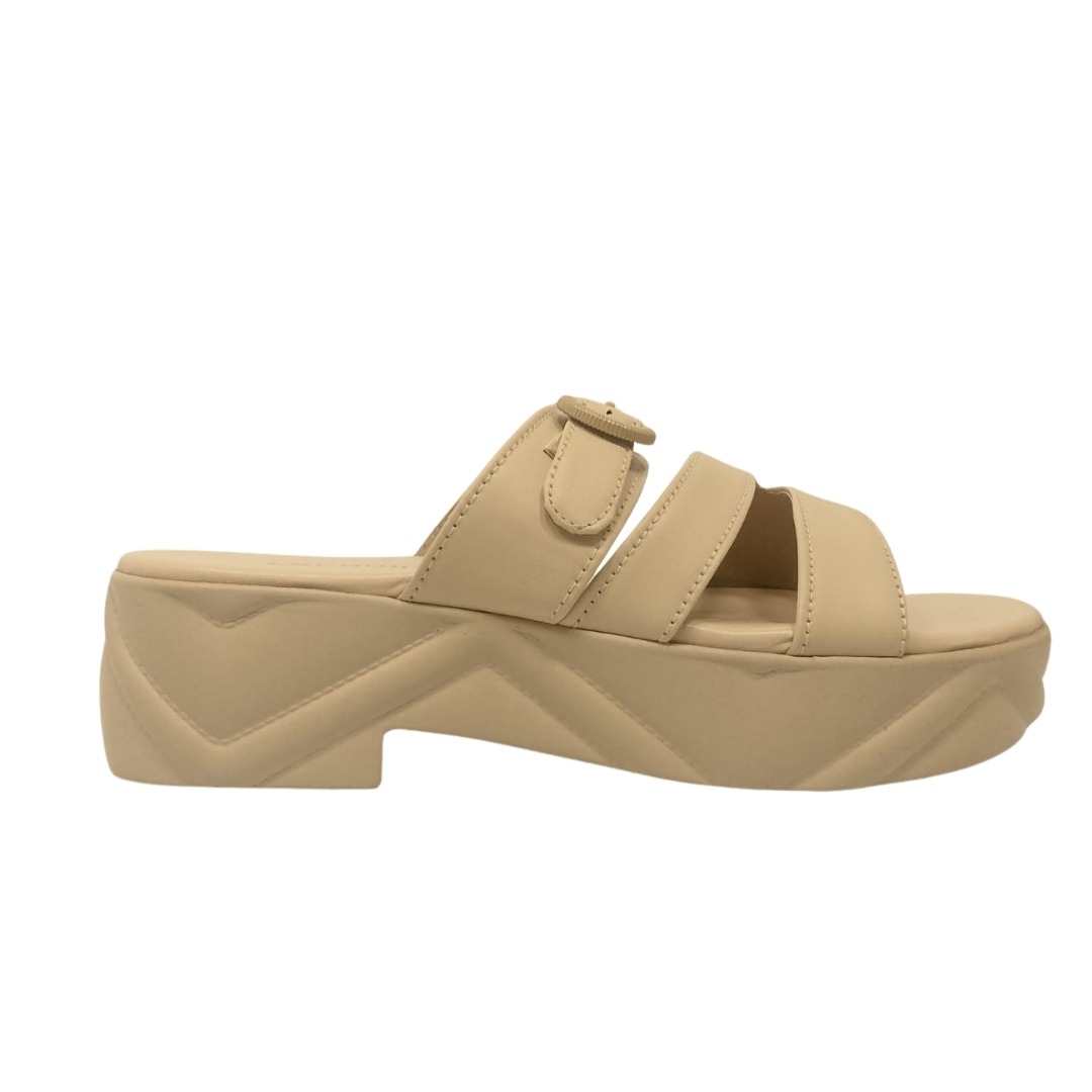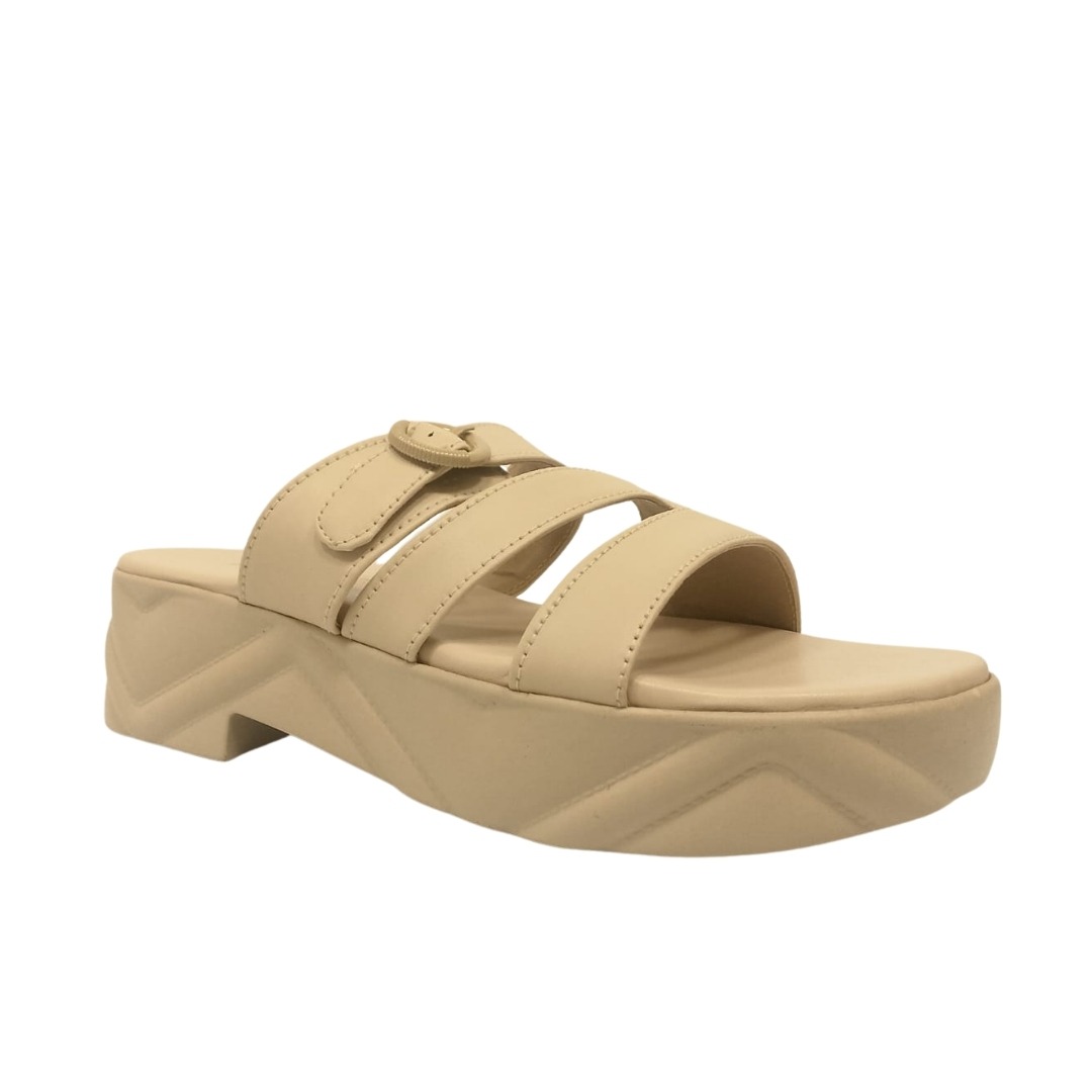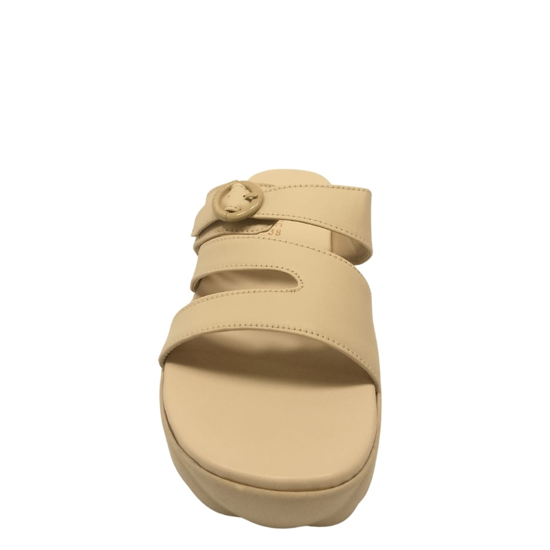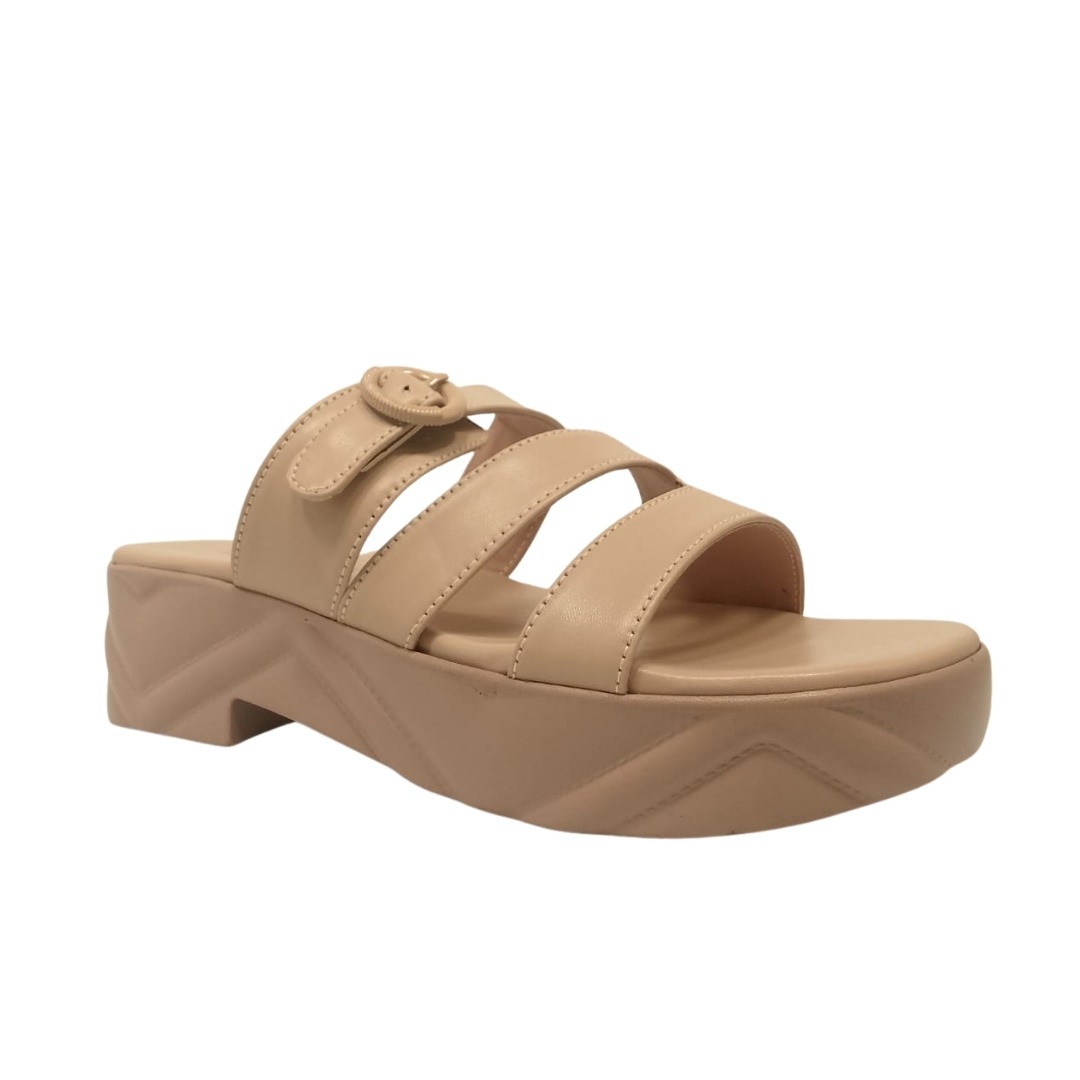 Step into effortless style with these chic nude platform Slippers. Designed with a modern triple-strap look and a trendy buckle accent, these slip-ons provide both comfort and sophistication